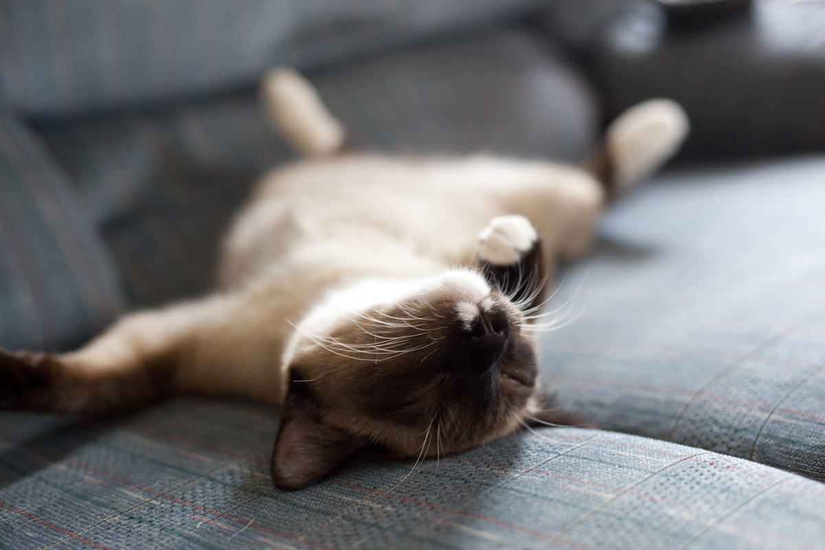 Last week Eric and I were working on the couch and looked over to find our poor hot kitty flat on his back airing out his armpits! Isn’t he so cute?