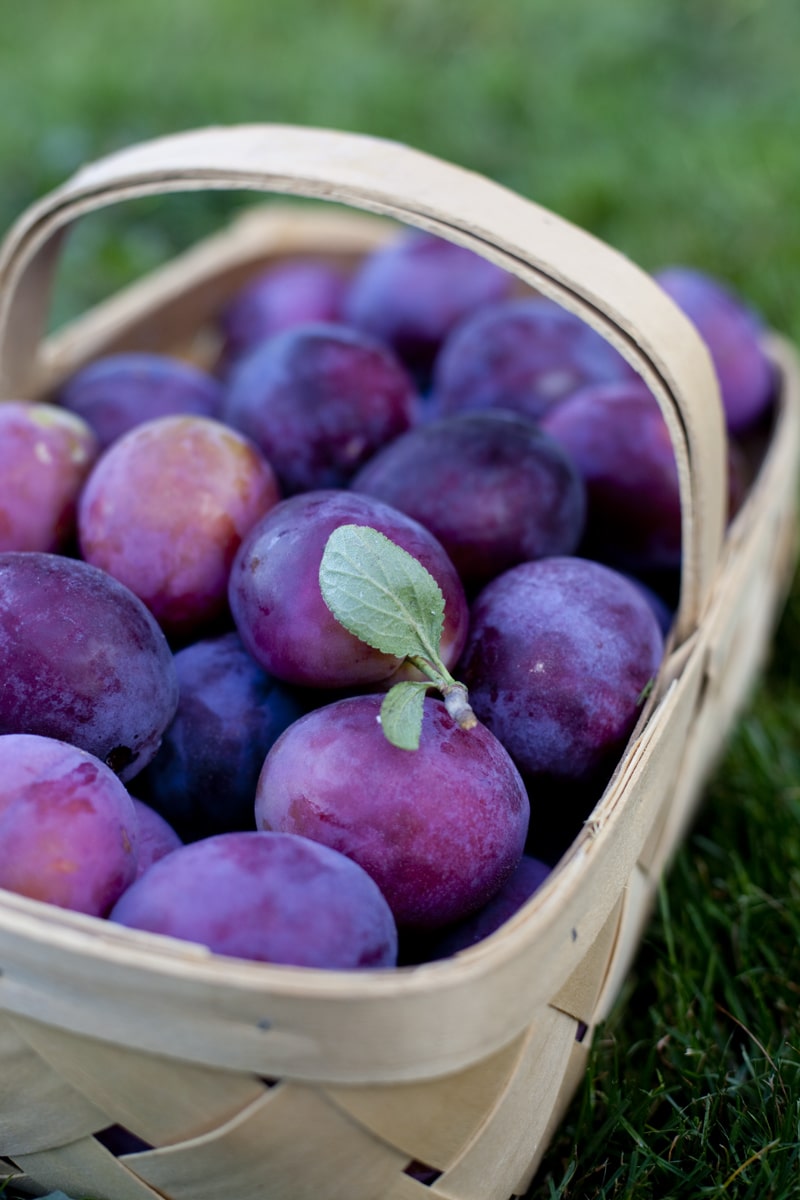 Although autumn has technically arrived, we’re still experiencing summer up here in Washington state. My friends in California have long reached the end of their plum season, but we just got our first crop in a few weeks ago. While I was tempted to climb either the tree or a ladder to gather the highest plums I could reach, we decided that I should follow the medical advice that women in their second or third trimester should not be doing anything with the risk of falling. I’m realizing this is especially important now that I can barely put my pants on standing up without falling down! So Eric picked all the ripe plums that I couldn’t reach from the ground.
