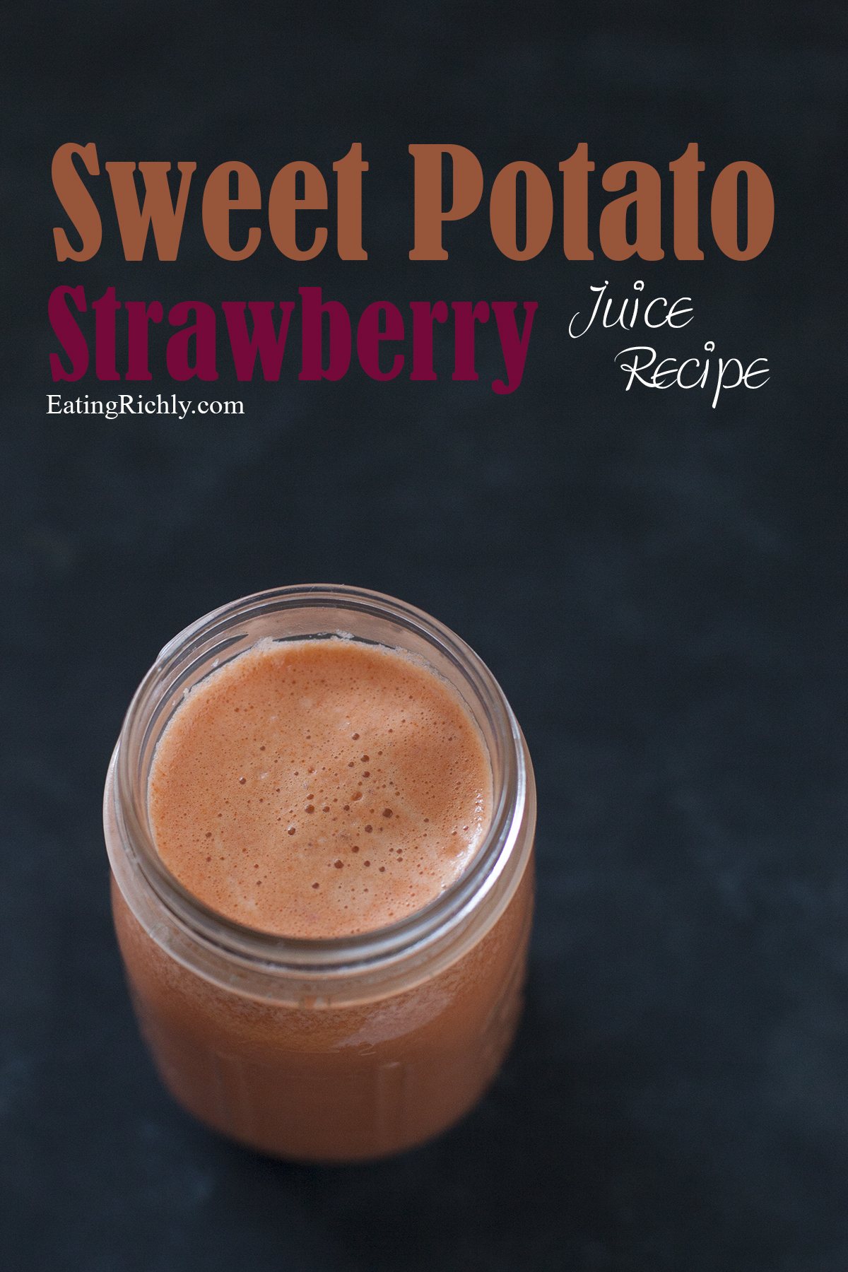 Refreshing juice recipe of sweet potato, strawberries, and green apple.