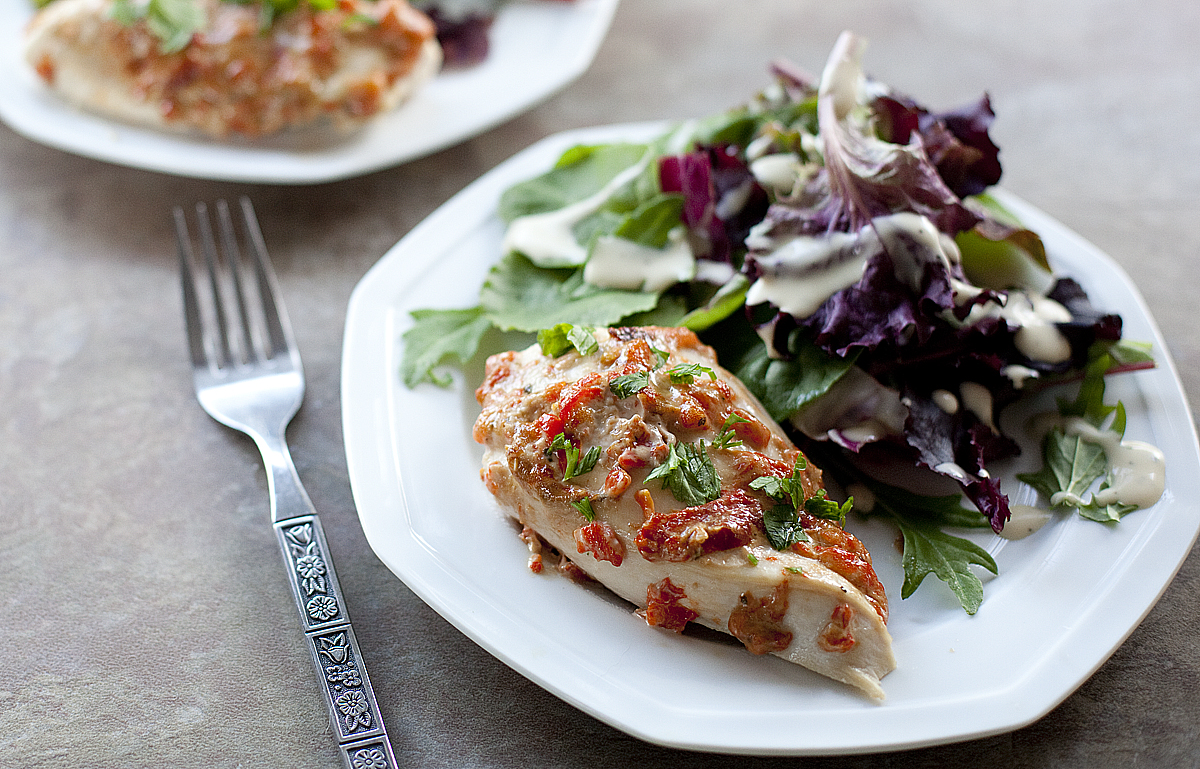 This week’s Chicken Change Up topic is near and dear to my heart. Budget friendly recipes! I was excited to try their recipe for Tuscan Glazed Chicken because the flavor combination looked absolutely perfect. While they didn’t give us a price breakdown, I immediately saw some ways to make this moist and flavorful chicken recipe even more budget friendly. The first, and biggest way to make their recipe more affordable is to make your own roasted red peppers. Well, how perfect that I just happened to have posted a nifty little infographic on roasting your own peppers earlier this week. Okay, yes, I totally planned it! But it really can save you as much as two dollars on this one recipe just by roasting your own peppers. It takes a little more time, but you can even roast a few red peppers at the beginning of the week and then keep them refrigerated until you’re ready for them.